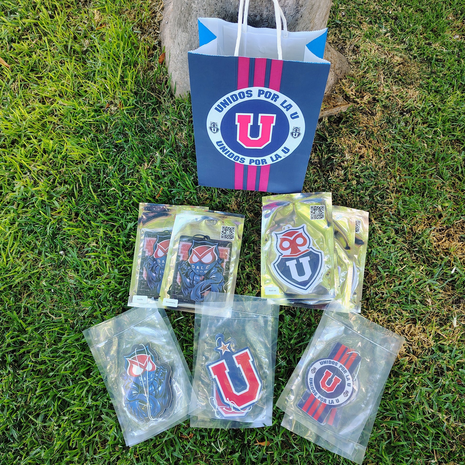¡Demuestra tu pasión por la Universidad de Chile con nuestro pack de 12 unidades de aromatizantes con una hermosa bolsa! Con distintos diseños y aromas, estos exclusivos y únicos productos son perfectos para los verdaderos bullangueros y bullangueras. ¡Aromatiza tu vida y acompaña a tu equipo en las buenas y en las malas!, como siempre 💙🤘❤️!!!!!